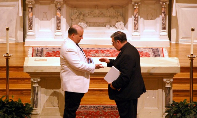 District Deputy Dirk Griffin and Monsignor Dick Murphy at the Installation of Officers ceremony, held at SJE on July 29, 2011.