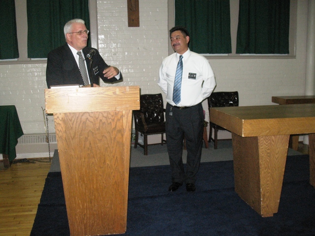 PGK Rick Casazza wraps it up at the Installation dinner. Incoming GK Jose Rector listens. The Installation of Officers ceremony was held at St Joihn the Evangelist Church on July 29, 2011.