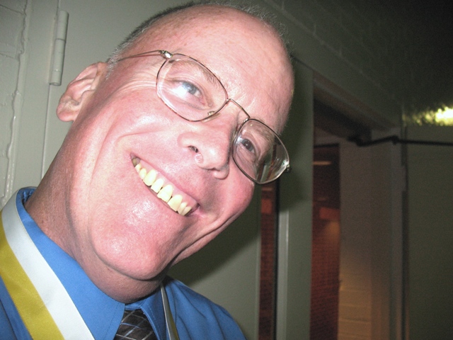 Br. Rob McNickle (photo guy for the night) learns he is about to be awarded Knight of the Year at the dinner. The Installation of Officers ceremony was held at St John the Evangelist Church on July 29, 2011.