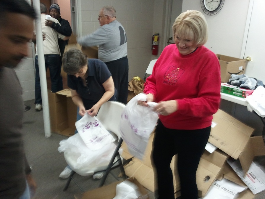 Volunteers filling SHARE bags.