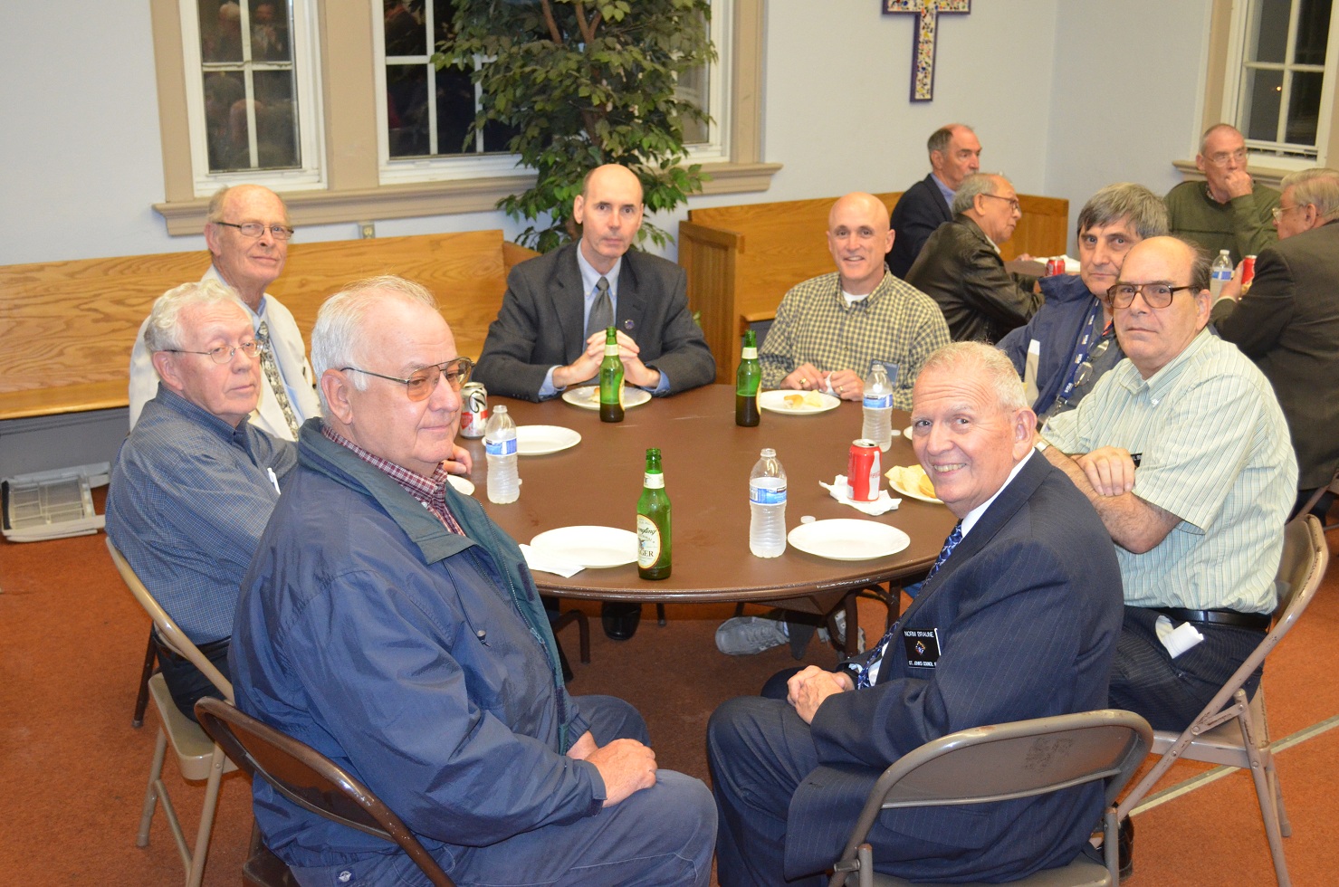 May 06, 2013, Post degree social. Clockwise around table: (left foreground) Br. John Sivinski, Br. Don Rohr, Br. Bob Griffiths, ???, Br. John Komons, Br. Jim Schabelski Sr, PGK Joe Brashears, Br. Norm Braune.