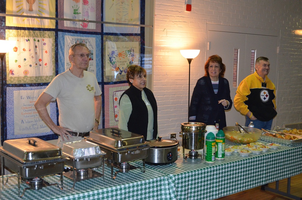 Serving Line: Br. Pete Tokar, Gloria Dausch, Kathy Tokar, and Br. Jim Dausch.