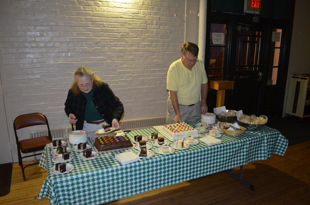 Dessert Line: Lisa and Br. Bill Cutchin preparing more desserts.