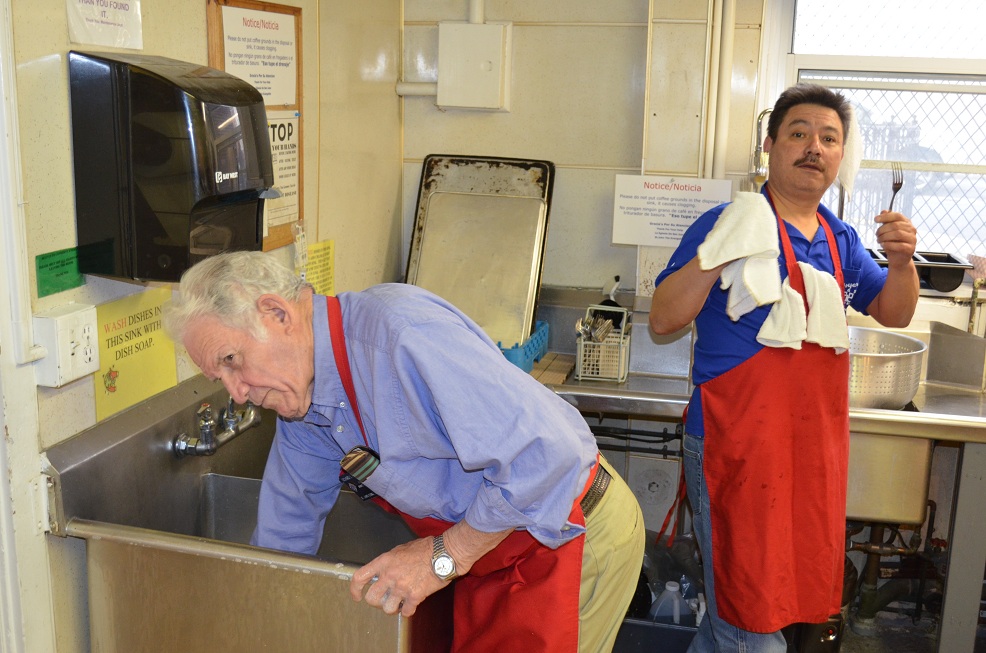 (LtoR) PGK Dick Putney and PGK Jose Rector washing dishes.