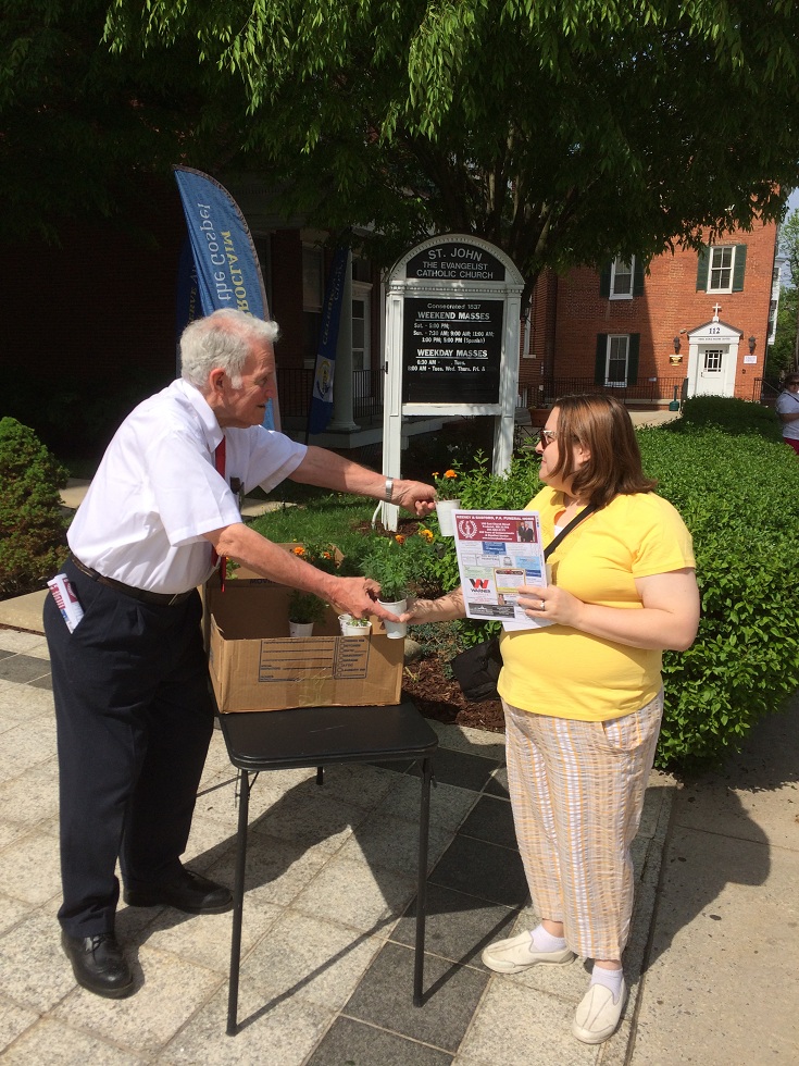 May 11, 2014 - Handing out marigolds on Mother's Day.