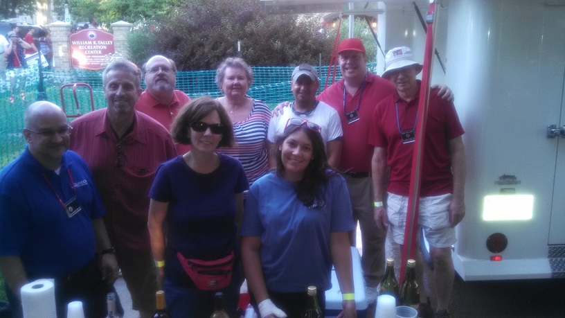 Back row: Br. Gino Lombardi, Br. Bob Sheehan, Maureen Sheehan, Br. Chris Garcia, Br. Fred Michel, and Br. Bob Willson. Front row: Br. Chris Cook, Cindy Satterfield, and a Celebrate Frederick Volunteer.