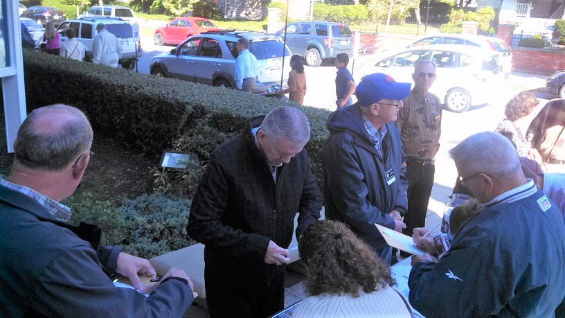 Br. Dave Vernot and DGK Bob Krajewski selling car raffle tickets with Br. Pete Tokar in background.