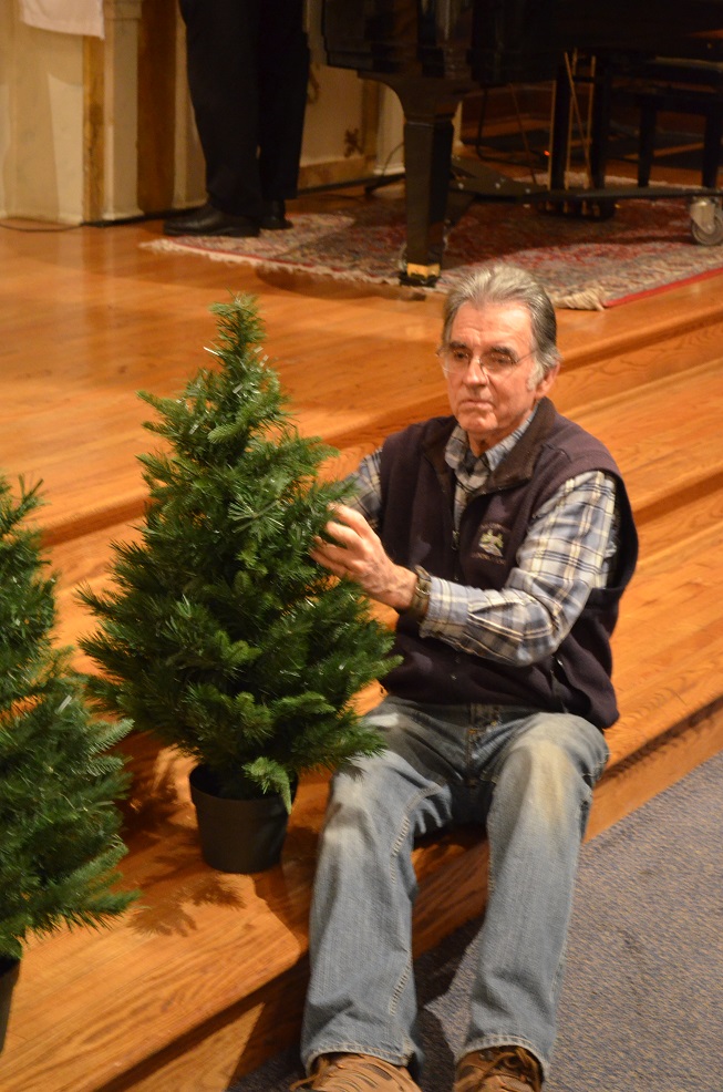 Br. Jim Schneck prepares a small tree for a window.