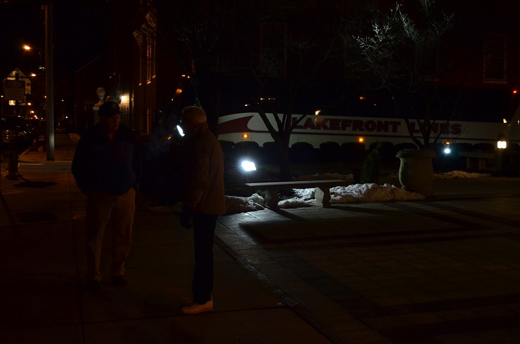 Br. Mike Collins and PGK Rick Casazza watching one of the buses leave.
