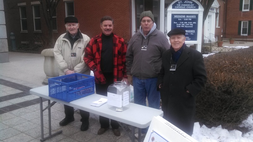 PGK Dick Putney, Br. Bill Bond, Br. Bob Boehman and Br. Don Rohr hand out baby bottles after Mass.