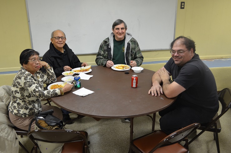 (LtoR around table) Carmen Cerezo, Br. Reddi Cerezo, Br. Jim Schabelski, and Br. Matt Coccagna.
