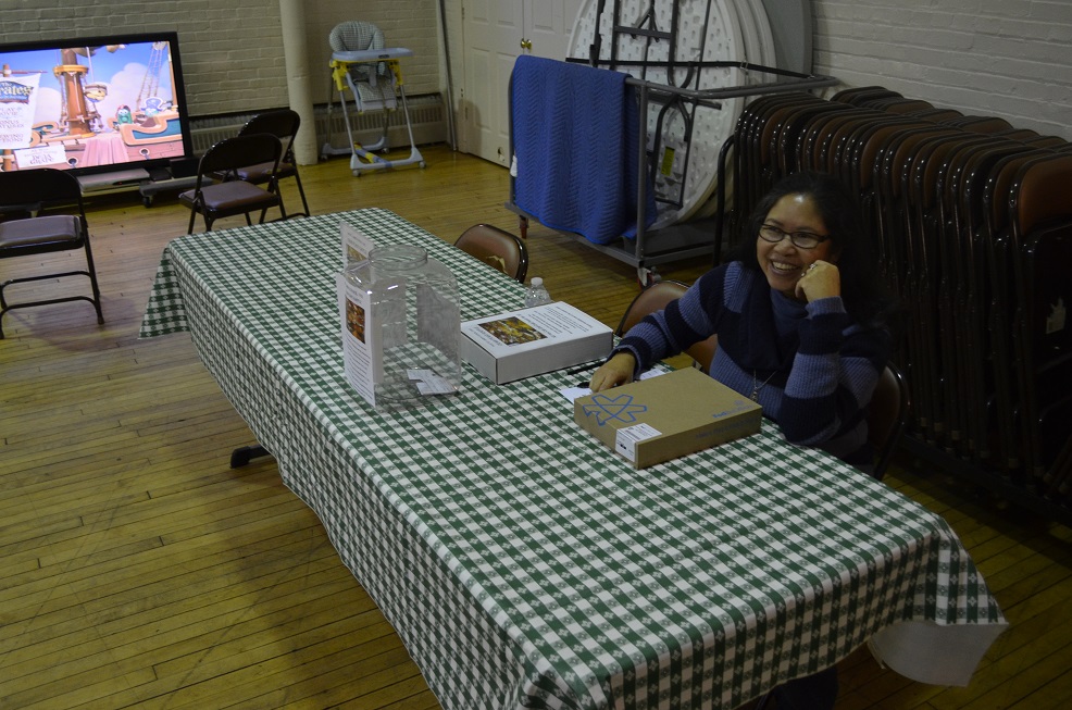 Karlene Wong sells Crab Feast raffle tickets.