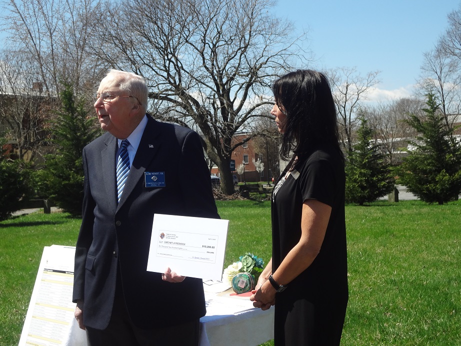 Presentation of $10, 280 St. Ignatius Check: Glen Wienhoff, Past Grand Knight and Culture of Life Chair for St. Ignatius of Loyola Council No. 11815 and Linda King, Executive Director of Care Net of Frederick. This donation from St. Ignatius was over and above the SEAS campaign effort.
