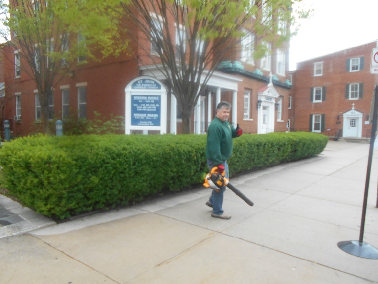 Apr 25, 2015 - Annual Frederick City "Bring a Broom Saturday" event as a Council community service project.Grand Knight Tom Plunkett cleaning up with leaf blower.