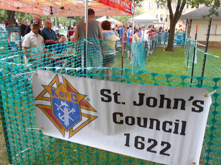 (LtoR) Entrance to the beer garden, Br. Reddi Cerezo, Grand Knight Bob Krajewski, Br. Brian Zimmerman, and Br. Lee Ericksen.