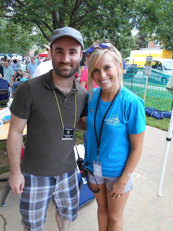 Br. Alex Miller with beer garden manager.