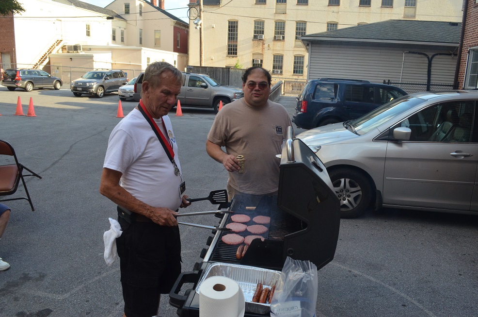 (LtoR): Br. Pete Tokar at the grill, assisted by Br. Matt Coccagna.