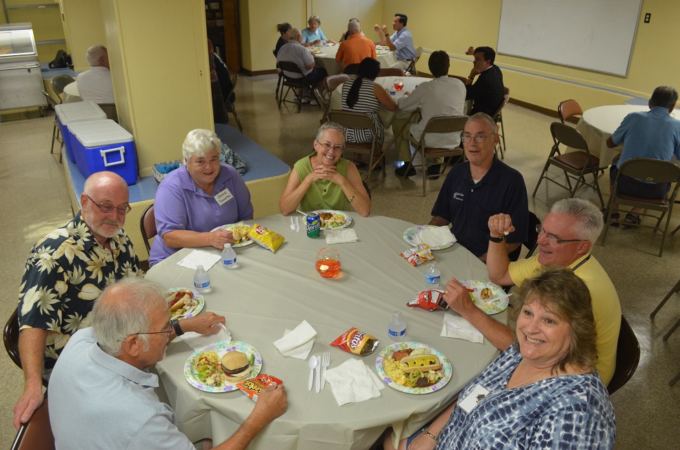 (LtoR) Br. Woody Johnston (light blue shirt), Br. Tom Rogers, Jackie Johnston, Cathy Rogers, Br. Tom McMahon, Br. Bob McDonnell and Cheryl McDonnell.