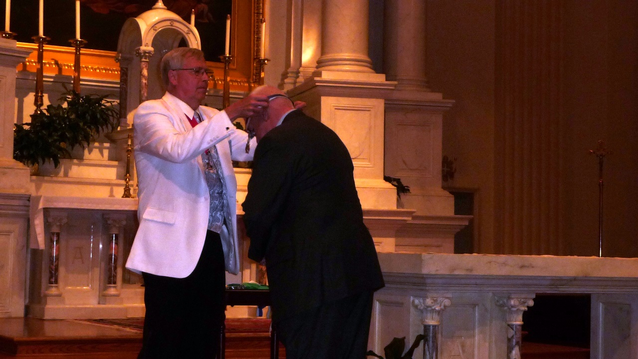 Investiture of officer's jewel by District 25 Deputy Rainer Dombrowski to an unidentified Knight.