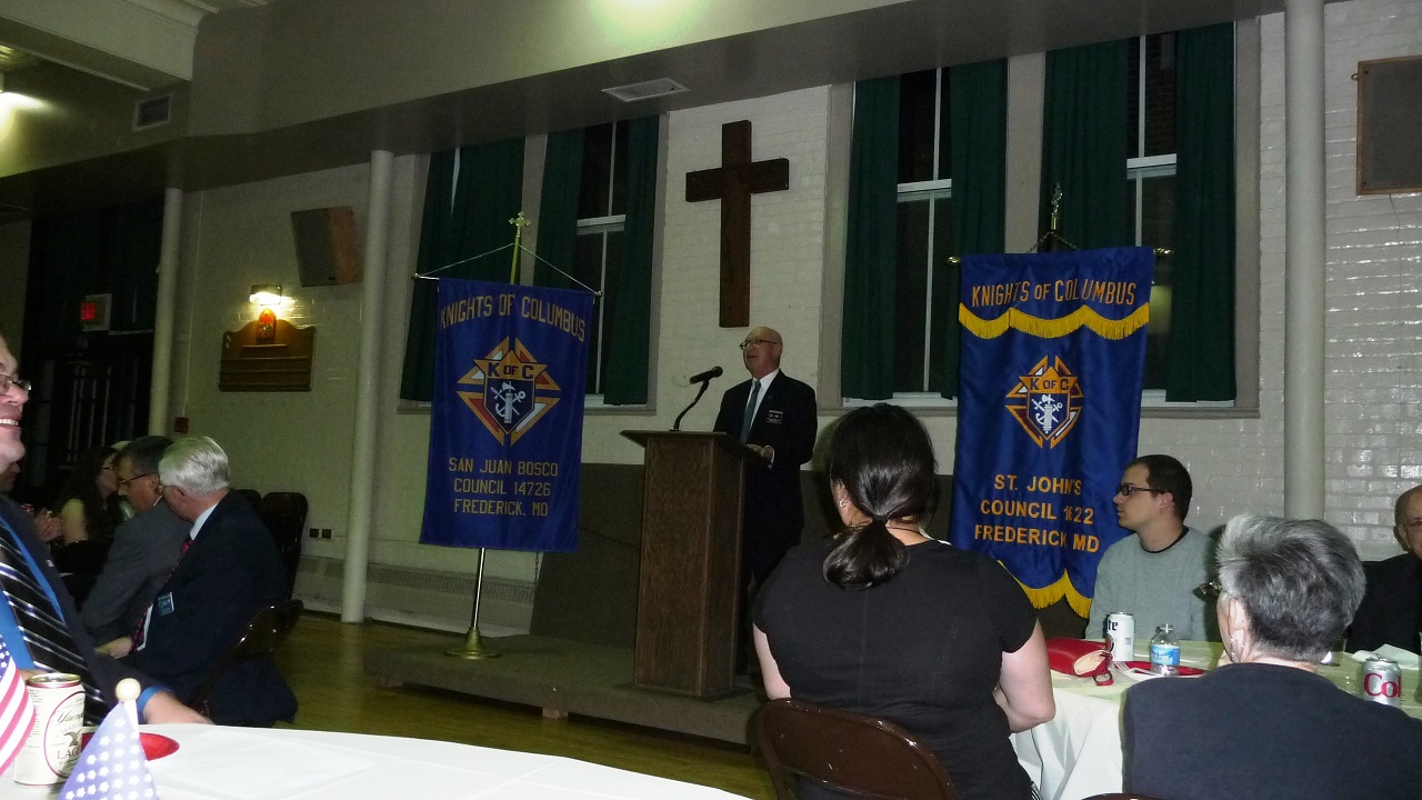 Grand Knight Robert Krajewski (1622) speaking at reception.