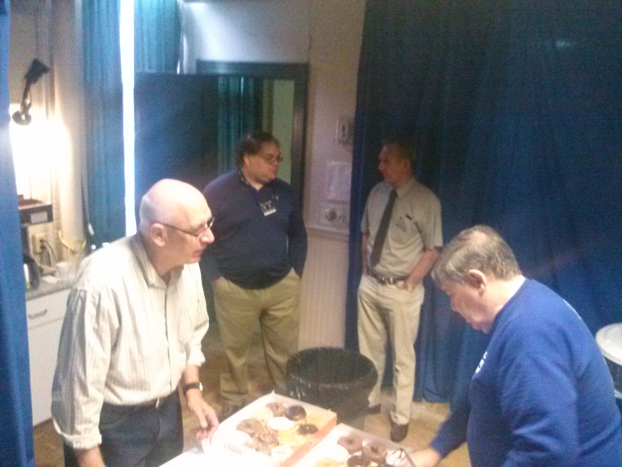 Knights preparing donuts. GK Bob Krajewski, Br. Matt Coccagna, Br. Pete Tokar and Br. Tom Rogers.