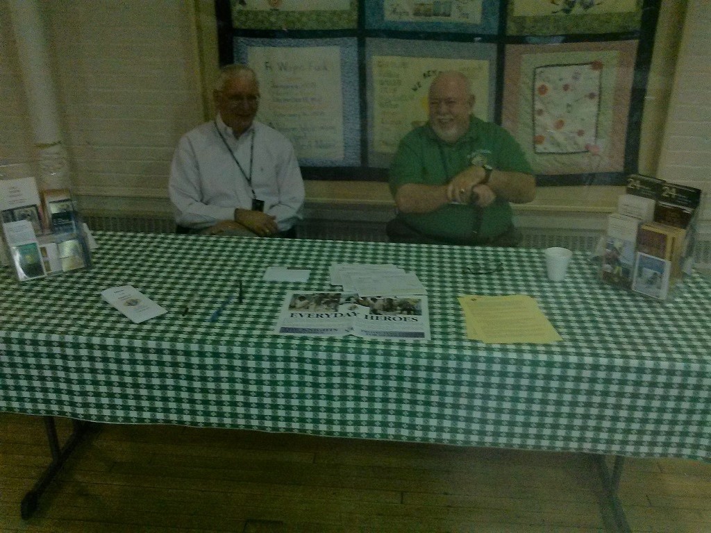 November 1, 2015, Membership table at monthly coffee and donut social after Masses at St. John the Evangelist Church.