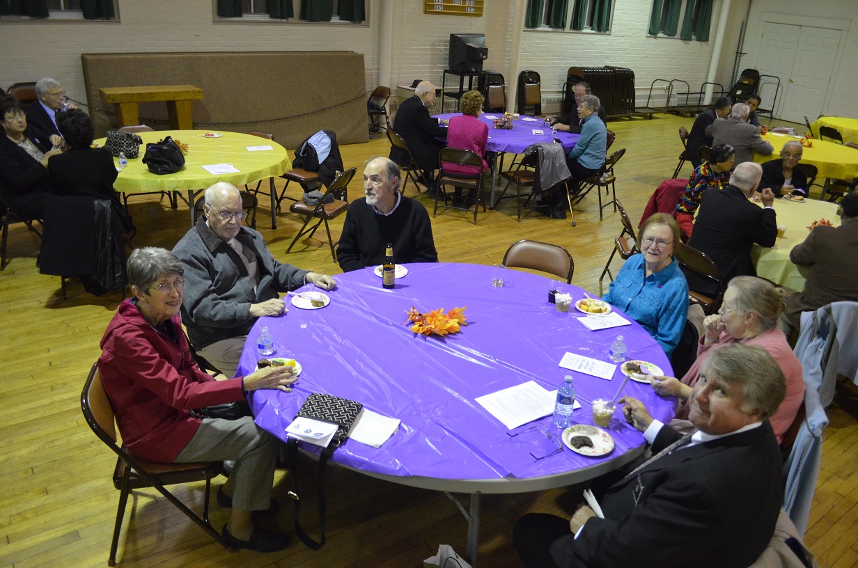 Post-memorial service dessert. (LtoR) Da. Eileen Borowski, Br. Bill Borowski (1622), SK John Satterfield (1622, Assy 384), Pat Wierzbicky (widow of PGK SK Bill Wierzbicky 1622, Assy 384, Lisa Cutchin, and Br. Bill Cutchin (1622).