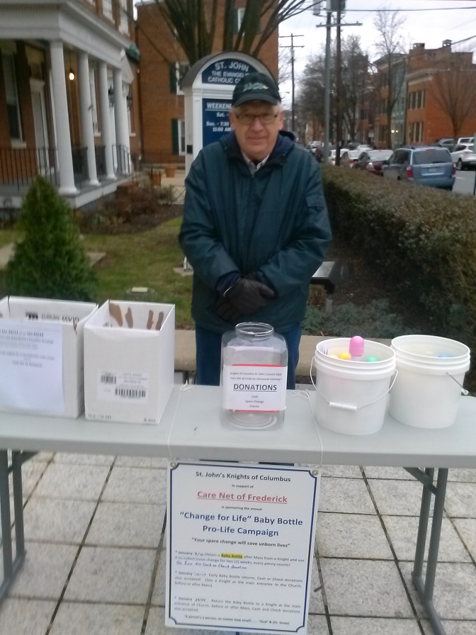 January 17, 2016 Handing out baby bottles for pro-life fund-raiser campaign for Care Net of Frederick.