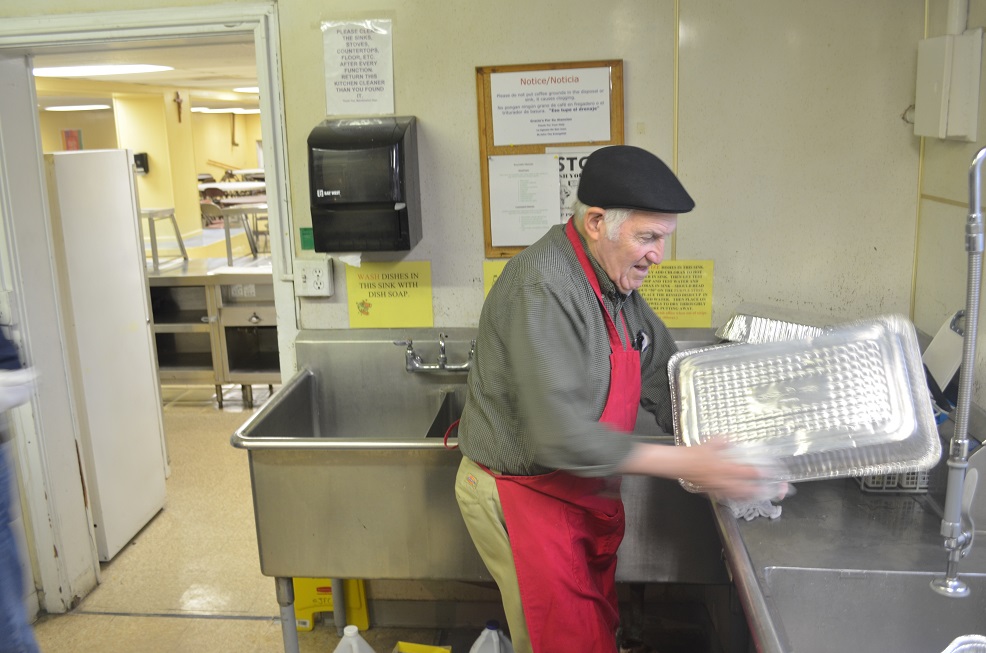 PGK Dick Putney washes pots and pans.
