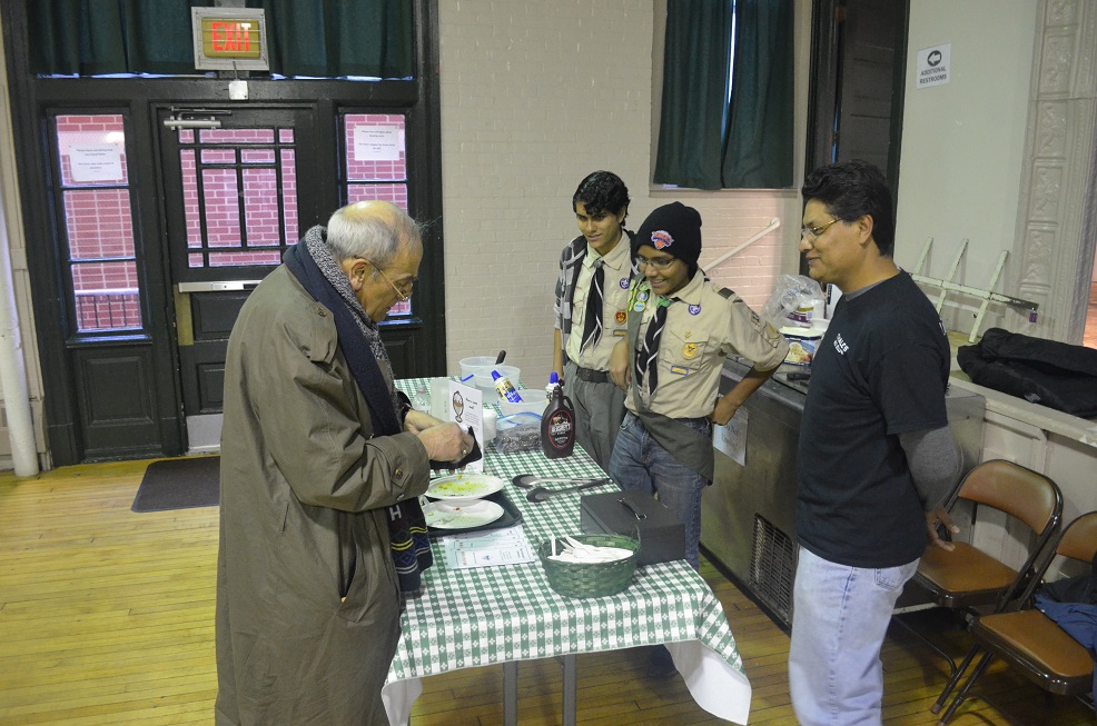 Boy Scout team sells an ice cream sundae to Br. Larry Prather (Cncl 1622).