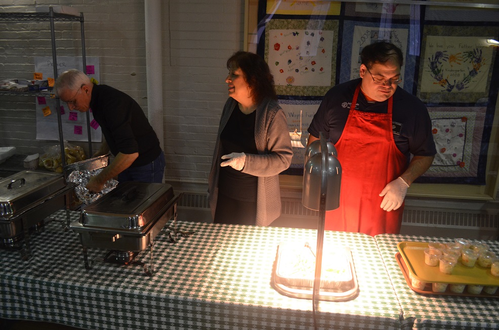 Serving line: PGK Rick Casazza, Kathy Tokar and Br. Matt Coccagna.