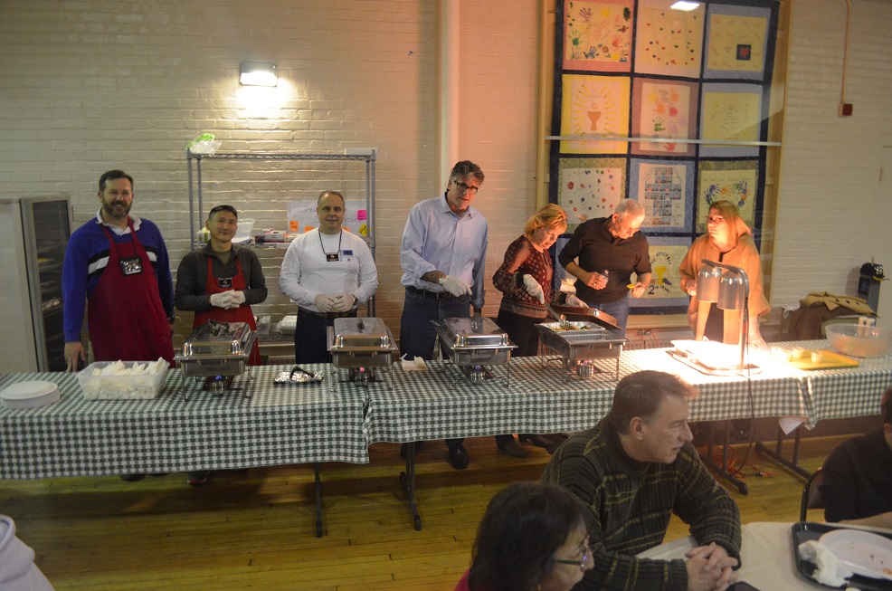 Serving Line: (LtoR) Br. Lee Ericksen, Br. Paul Kwon, Br. Craig Giangrande, Br. John Bargero, Cheryl McDonnell, PGK Rick Casazza and ??.