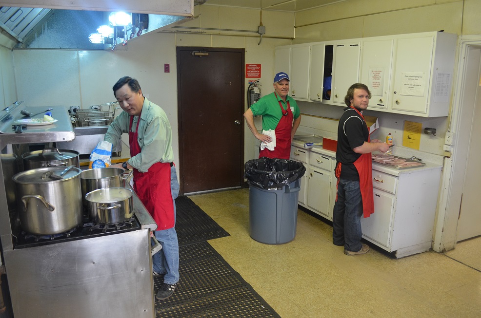 Kitchen team: (LtoR) Head Chef Br. Maurice Wong, Br. Bob McDonnell and Bob's son, Kevin McDonnell.