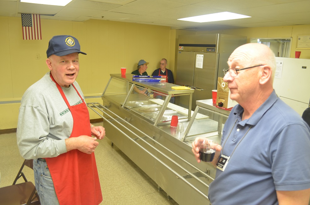 Volunteer lounge: (LtoR) In front, Br. Mike Collins and Grand Knight Bob Krajewski. In rear: Br. John Satterfield and Br. Tom McMahon.