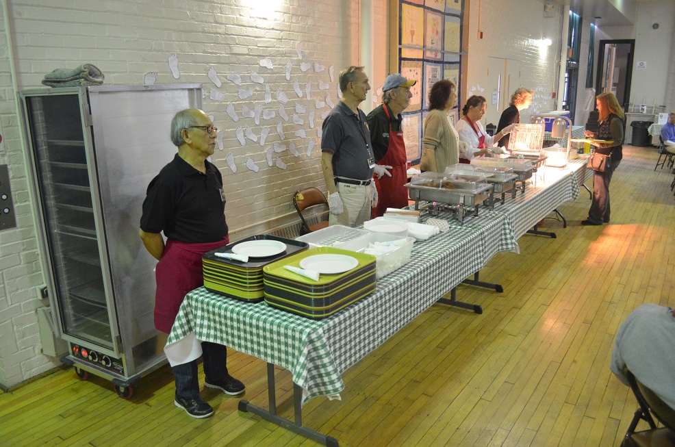Serving Line (LtoR): Br. Reddi Cerezo, Br. Pete Tokar, Br. John Satterfield, Kathy Tokar, Ellen Satterfield, and Regina Casazza.