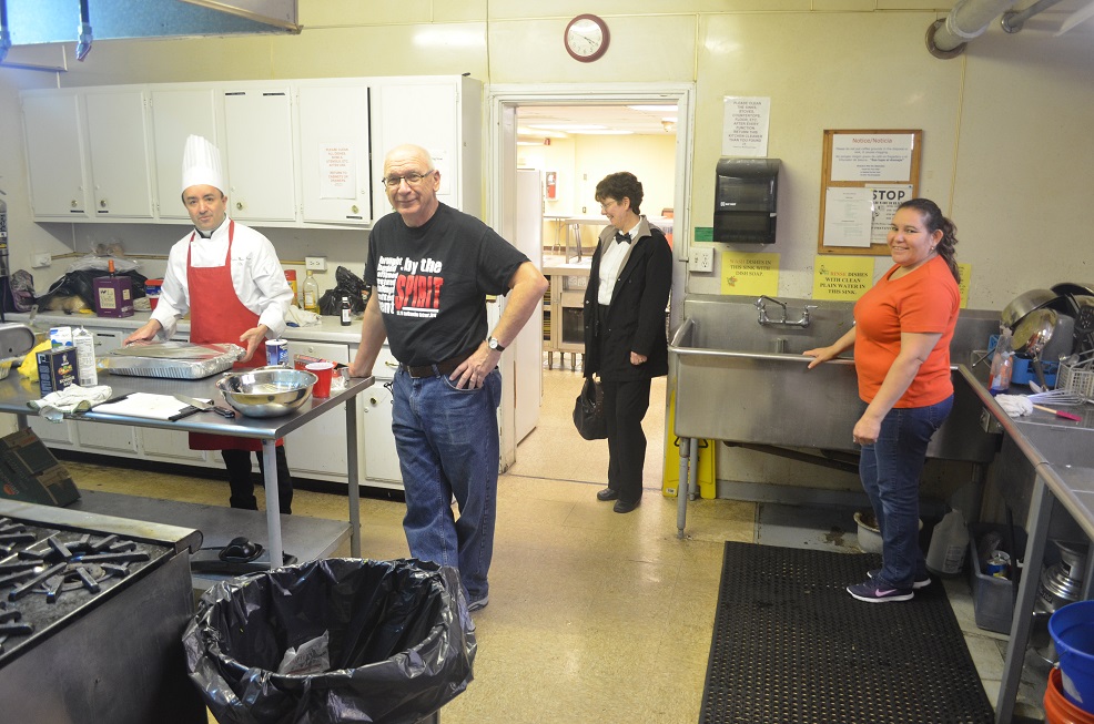 In the kitchen (LtoR): Fr. Hector, Grand Knight Bob Krajewski, Cindy Satterfield and Laura Rodriguez.