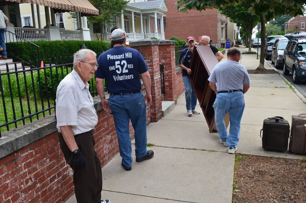 (LtoR) Br. Norman Braune (Cncl 15985), Br. John Jones (facing away), Br. John Satterfield, PGK Rick Casazza and Br. Sheldon Shealer load furniture into a moving truck.