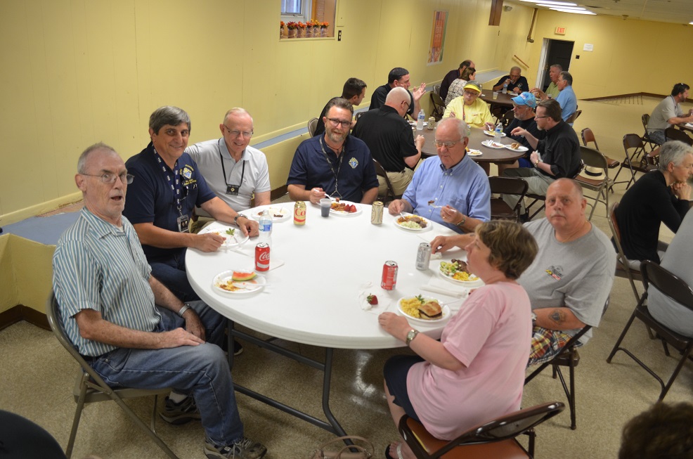 Clockwise around table from front left: Br. Tom McMahon, Br. Jim Shabelski Sr., Br. Bob Willson, Br. Steve Davis, Br. John Sivinski, Br. Bob Rawlins (new transfer member) and his daughter.