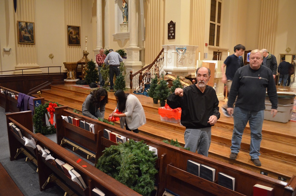 December 23, 2016 - Christmas Decoration of St. John the Evangelist Church by Knights of Columbus, St. John's Youth Group, and other volunteers.