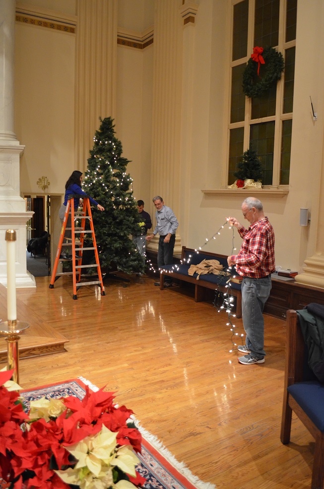 December 23, 2016 - Christmas Decoration of St. John the Evangelist Church by Knights of Columbus, St. John's Youth Group, and other volunteers.