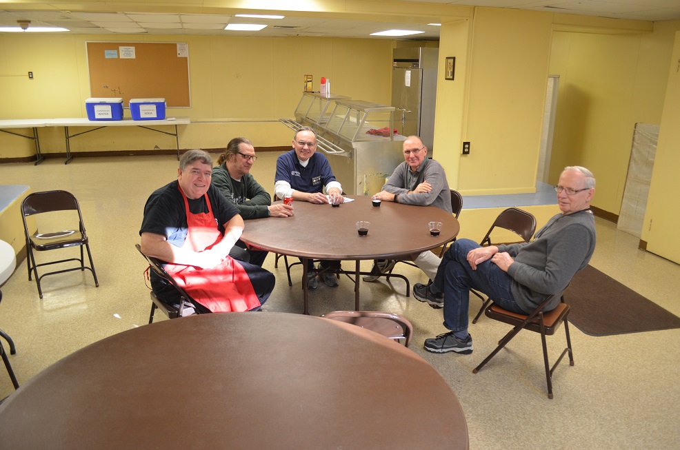 Volunteers relax before the dinner. (LtoR) Br. Mike Willett, Br. Jim Sier, Br. Matt Meadows, Br. Mike Vaughn, and Br. Bob Willson