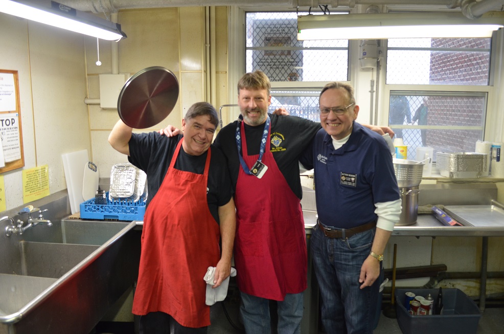 (LtoR) In the kitchen, Br. Mike Willett, Br. jimbo Cooper, and Br. Matt Meadows.