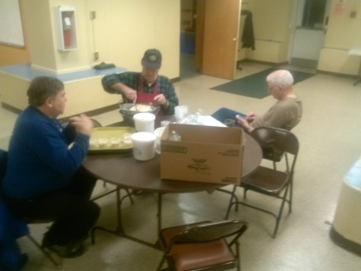 LLtoR) Br. Mike Willett, Br. Tom McMahon preparing the Cole slaw, and PGK Rick Casazza.