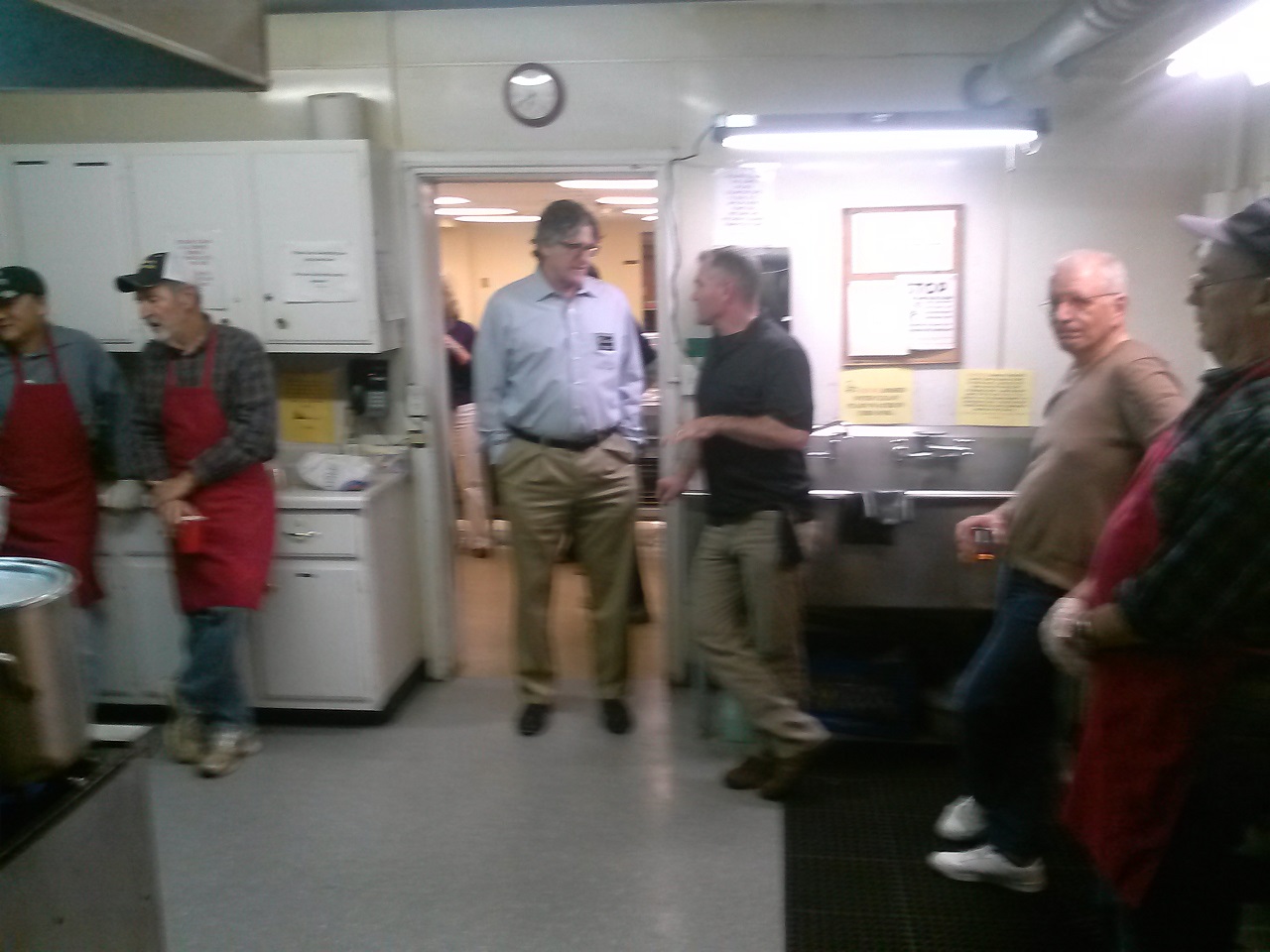 In the kitchen (LtoR) Br. Maurice Wong (partial), Br. John Satterfield, DGK John Bargero, Br. ???, PGK Rick Casazza, and Br. Tom McMahon.
