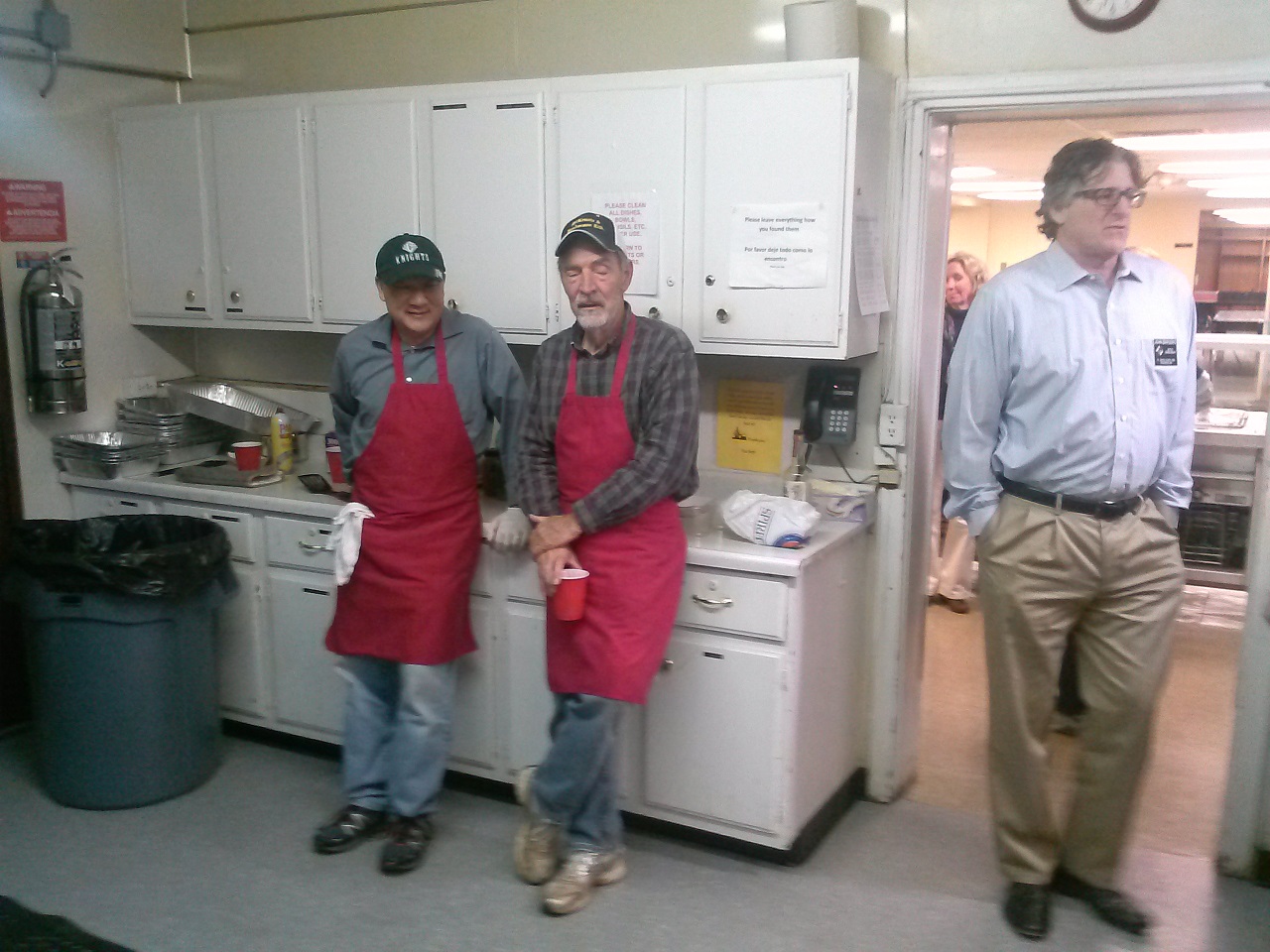 In the kitchen (LtoR) Br. Maurice Wong (partial), Br. John Satterfield, and DGK John Bargero.