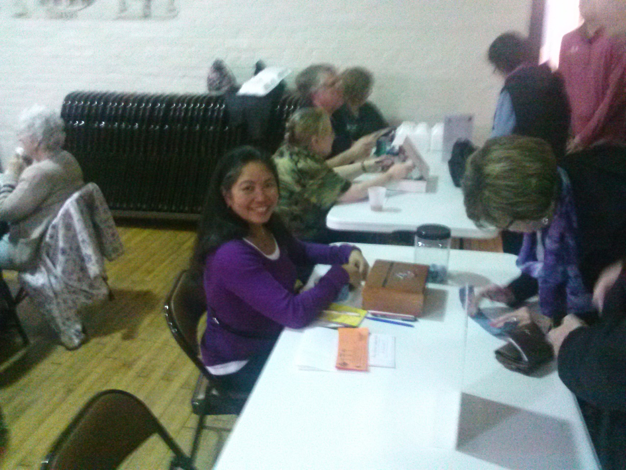 (LtoR) Karlene Wong sells raffle tickets. Lisa Cutchin, Br. Bill Cutchin, and their daughter serve as cashiers.