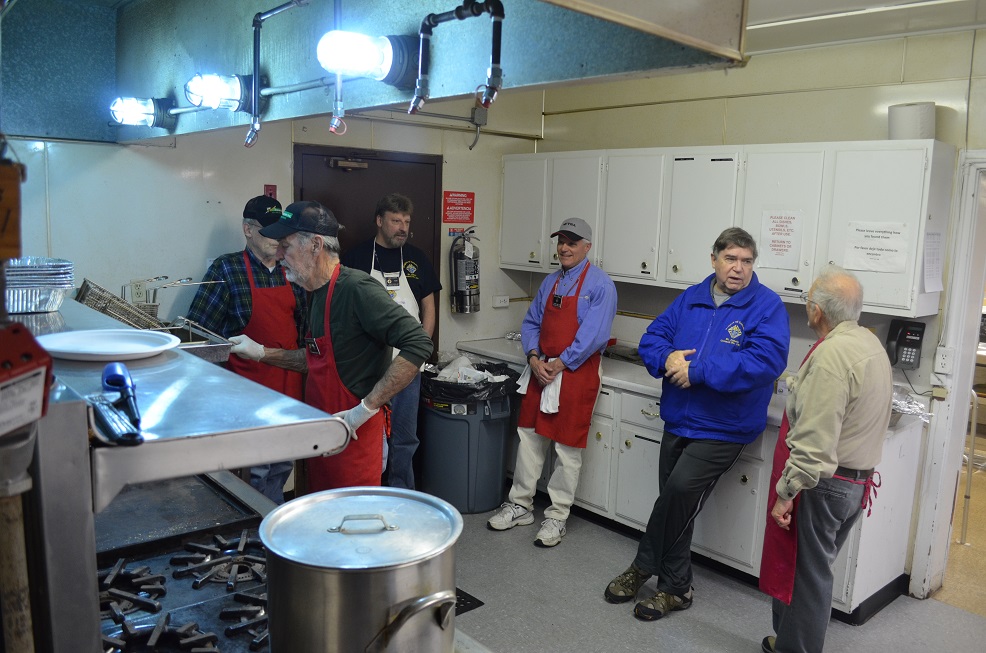 In the kitchen, (LtoR) Br. Tom McMahon (obscured in rear), Br. John Satterfield, Br. Jimbo Cooper, Br. Bob McDonnel, Br. Mike Willett, and Br. Woody Johnston.