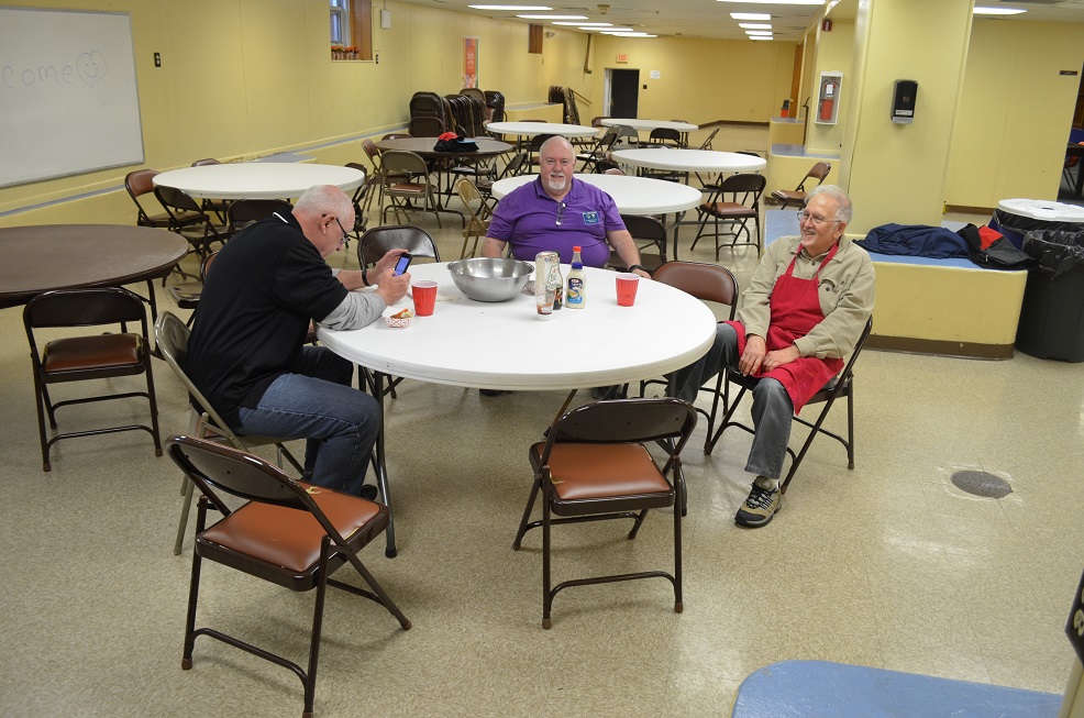 In the volunteer's lounge, (LtoR) GK Bob Krajewski, Br. Bill Desmond, and Br Woody Johnston.