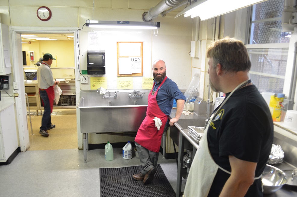 In the kitchen, (LtoR) Br. Maurice Wong (in doorway, facing away), Br. Alex Miller, and Br. Jimbo Cooper.