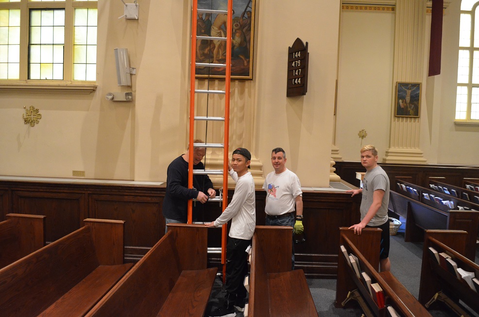 April 15, 2017 - Changing Decorations at St. John the Evangelist Church from Lent to Easter.